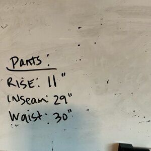 Approximate measurements: 11” rise, waist 30” inseam 29.5”