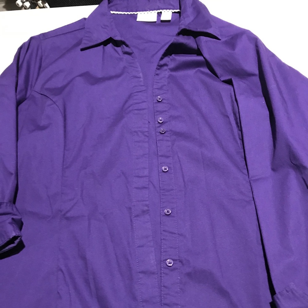 2XL Purple Lee Riders Blouse with 3/4 sleeves. Stretchy material and pleated in the back