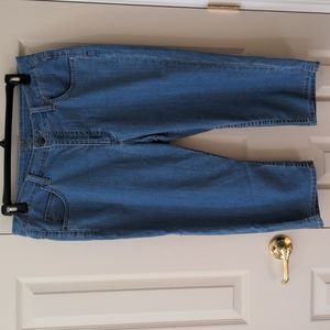 Lee Riders denim Capri. size 16, 2 functional pockets in the back two functional pockets in the front front zipper and button. No tags but new, never worn.