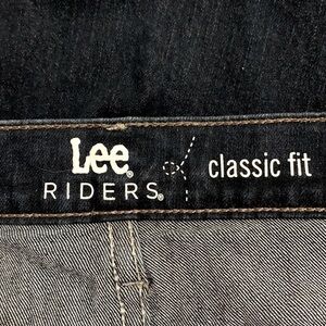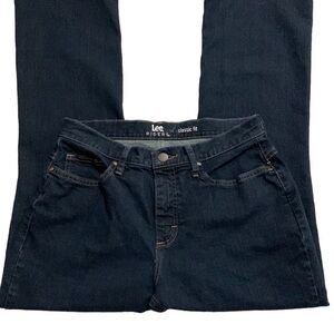 Lee Riders Classic Fit Jeans, Size 10P (See approximate measurements below), Dark Wash Blue Denim. Waist 15”, Rise 10”, Inseam 29”, Length 39”, Ankle 9.5”. Measured lying flat. Bootcut. High Rise. Very Good Condition. 562