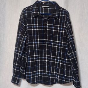 Lee Riders Fleece Button Down Plaid Long Sleeve Blue XL Outdoor