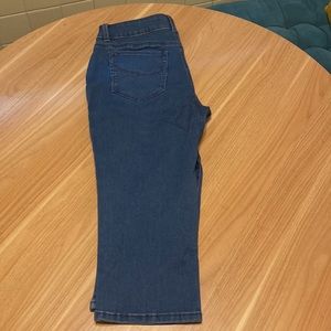 Cropped pants. 2% spandex. 18 1/2 inseam. Dark blue with slight distress. NWT.