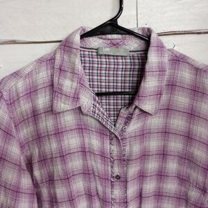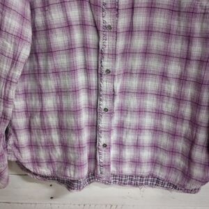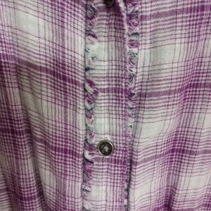 Lee Riders Purple Plaid Button Front Shirt Size XL. Ruffled Trim Down Front