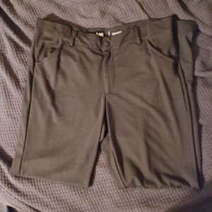 Straight leg black pants from Riders by Lee. Super comfy for the office. Features real front pockets and false back pockets. The creases in the waistband are from the hanger.