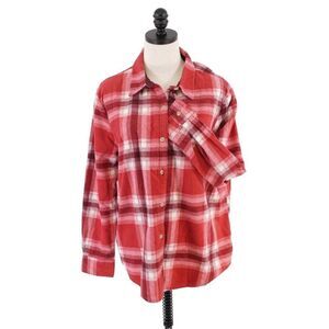 Lee Riders Red Plaid Large Flannel Collared Button Front Shirt