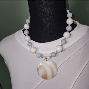 Lee Sands Gemstone & White Coral Necklace w/ Shell Pendant. NWOT