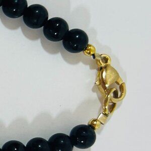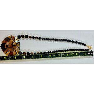 Lee Sands MOP Abalone Mosaic Lion Necklace Earrings Set on Onyx Tigers Eye Beads