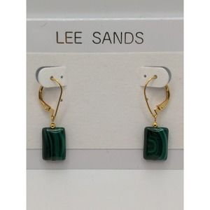 Lee Sands Malachite Interchangeable Dangle Earrings. Set Includes Square, Circle and Heart Shape with gold tone Lever back closure