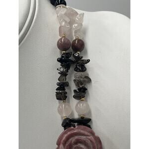Lee Sands Multi-Gemstone Rhodonite Rose Ouartz Carved Flower Two Strand Necklace
