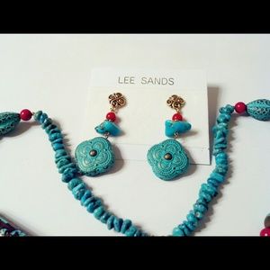 Lee Sands Turquoise Coral Necklace Earrings Set