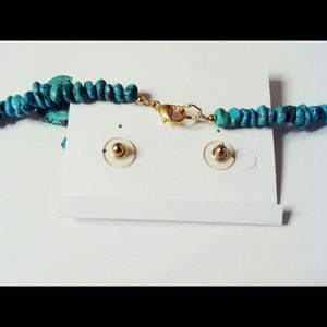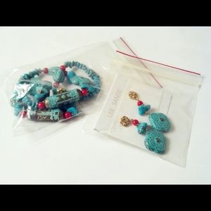 Lee Sands Turquoise & Coral Necklace & Earrings Set / New In Original Packaging