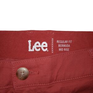 Lee Shorts Womens 18 Medium Red Bermuda Mid Rise Regular Fit Zip Pockets Cotton