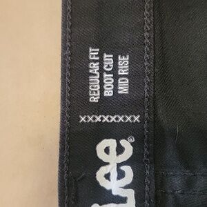 Lee Size 12P Regular Fit Boot Cut Mid Rise Black Jeans, Excellent Used Condition. Size Tag has been cut off, but handwritten in shows "Size 12P" so PLEASE PLEASE PLEASE refer to measurements in photos to ensure proper fit. Classic 5 Pocket Styling with Zipper Fly and Button Closure. Dark Black in color.