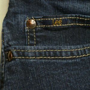 Lee Size 8 Womens LOWER on WAIST Bootcut Leg STRETCH Denim DARK Wash Blue Jeans