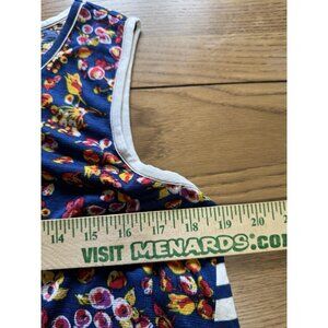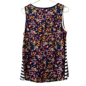Lee Size Large Floral Striped Blouse Blocked Style Sleeveless Top Blue Boho NWT