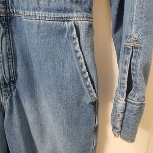 Lee Size S Union-Alls Blue Denim Long Sleeve Coveralls, EUC. No Holes, Rips, Stains or Snags. Full Front Zipper Closure with Top Snap. Pockets everywhere - Front, Back, Chest. Please Please Please refer to measurements in photos to ensure proper fit as Tagged Size is Different inside than at Collar. Collar size shows S and Inside Shows M. Again, Please Double Check Measurements!