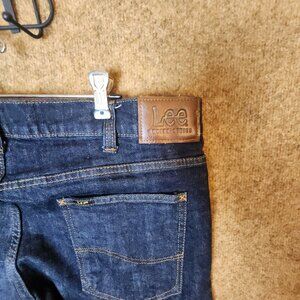 Lee Slim Fit Jeans Tapered Leg Men 38x30 Blue Denim Dark Wash Stretch 5-Pocket (M035)