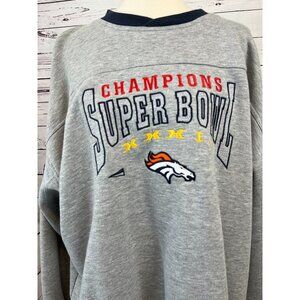 Lee Sport Pullover Sweatshirt Denver Broncos NFL Super Bowl Champions XXXII Heather gray in color with embroidered spell out graphic on the front. Super bowl patch. Spell out Lee Sport on lower sleeve. Made in China Nutmeg Mills Inc. 55% Polyester 45% Cotton Pit to end of sleeve 22.5", pit to pit 29", back bottom of collar to bottom of pullover shirt 30.5". Great preowned condition with no rips or stains. Perfect for the Denver Broncos football fan! Unisex for men and women - check measurements.