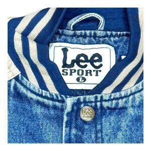 Lee Sport Yankees Denim Jean Varsity Jacket L Blue MLB Baseball World Series Vtg