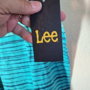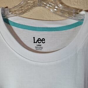 Lee Striped Short Sleeve Crew Neck Tee Shirt Men's Size L New White Blue Casual