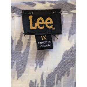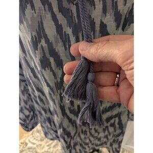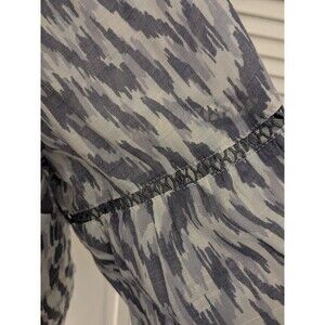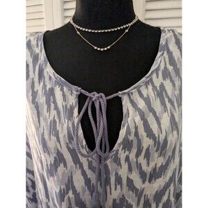 Lee Top Women’s 1X Purple Gray Ikat Print Boho Peasant Crochet Flutter Blouse