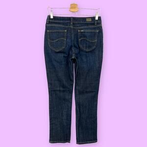 Lee US 8 Short Womens Blue Regular Fit Straight Leg Jeans Dark Wash Mid Rise