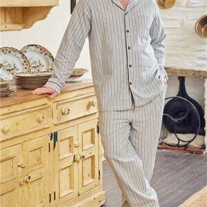 Lee Valley Ireland Men Flannel Pajamas Size L Lounge Relaxed Button Fly 2 Piece