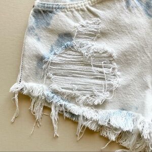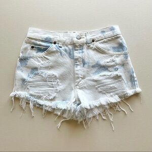 Vintage Lee bleached denim cut-off shorts. I'm listing these as size 0, I'm an XS/2 in denim shorts and these were a little too small for me. Tag says size 29X30 (refer to measurements listed below because these are vintage and run small). Denim doesn't stretch. Intentional distressing and holes. Made by Unite Garment Workers of America in the USA. Five pockets, zipper button fly. So cool, great condition!
