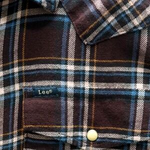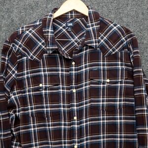 Lee Western Shirt Women's XXL Pearl Snap Long Sleeve Maroon Blue Plaid Flannel