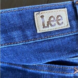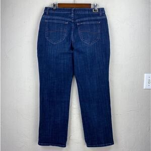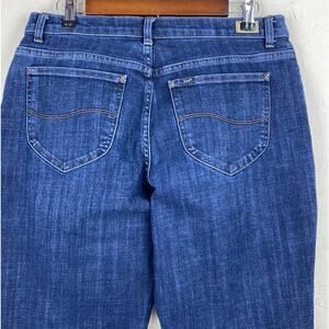 Lee Women Blue Dark Wash Denim Relaxed Fit Straight Leg Mid Rise Jeans Sz 12
