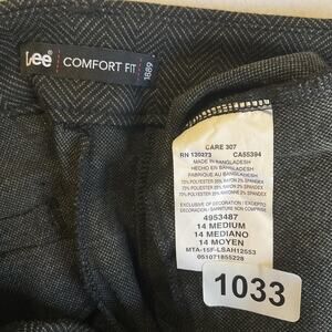 Lee Women Pants 14 MEDIUM Gray Herringbone Dress Pants Button 33" Inseam Comfort