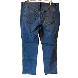 Lee Women Slim Fit Mid Rise Straight Leg Jeans Size 18 Short Light Wash Stretch