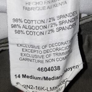 Lee capri pants, women’s 14 khaki, olive green casual, stretch cotton, natural fit