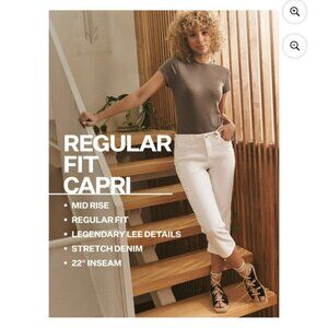 Lee Women's 16 White Mid Rise Regular Fit Denim Capri 22" Inseam NWT. 78% Cotton, 20% Polyester, 2% Spandex.