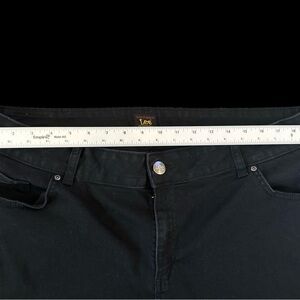 Classic black stretch jeans from Lee. Comfortable and versatile with a mid-rise fit, straight leg, and five-pocket styling. Made from a cotton/polyester/spandex blend for a bit of stretch.
