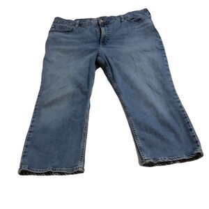Keywords: Lee, Women's Capri Jeans, Mid-Rise Denim, Blue Jeans, Casual Wear, Zip Closure, Five-Pocket Style, Leather Patch, Comfort Fit, Flattering, Pre-owned, Everyday Fashion, Versatile Denim, Classic Style, Fashion Essential.