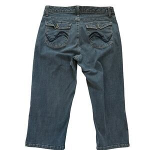 Lee Women’s Cropped Jeans Size 12 Medium Blue Stretch Denim Low Waist