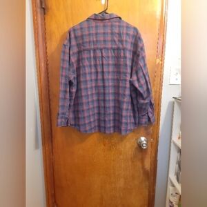 Lee Women's Flannel Putple/Blue Blocked Design Button Down Shirt Size L Two Front Pockets Good Condition