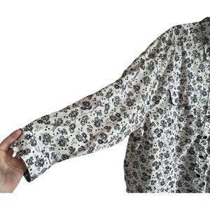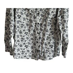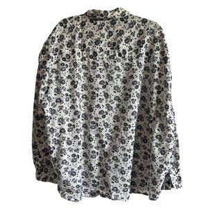 Lee Womens Floral Button-Up Long Sleeve Shirt XXL Cotton Black White Frontier