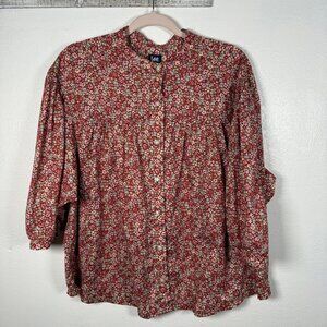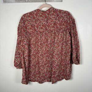 Lee Womens Floral Roses Button-Up Blouse Large 3/4 Sleeves Cotton Cottage Modest
