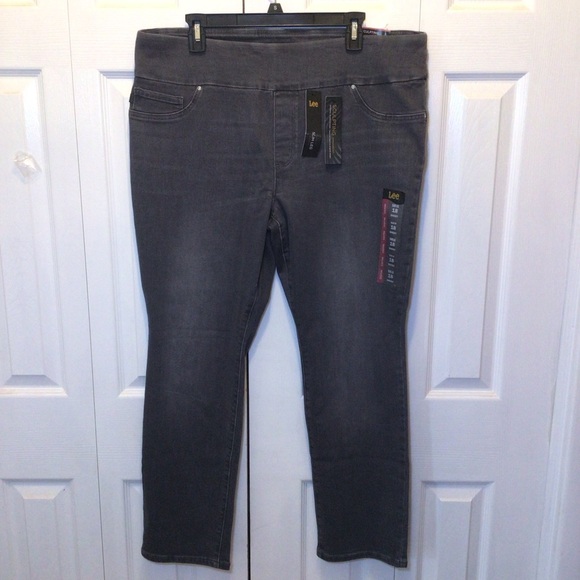 Lee Women’s Gray Sculpting Slim Fit Slim Leg Pull-On Jeans Size 18S- Irregular. New with tags. Tag marked “Irregular”. I could not find any major visual flaws. From smoke free home. * model photos to show fit only.