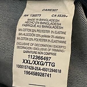 64% cotton, 33% polyester, 3% elastane