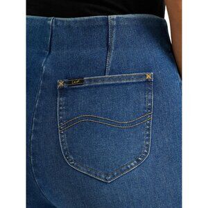 The Lee Women's High Rise Pull-On Bootcut Pant in size 16 offers a fitted fit with a high rise waist. Made of denim fabric with a medium wash, these pants feature a 5-pocket design and a 30-inch inseam. The bootcut style and solid blue color make them versatile for all seasons, while the comfort and stretch material ensure a comfortable fit. Perfect for a casual yet stylish look, these pants are machine washable and easy to care for. Ideal for everyday wear or dressing up for a special occasion, these high-rise jeans from Lee are a must-have in any woman's wardrobe.