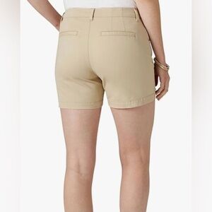 Lee Women’s Legendary Light Tan Regular Fit Mid Rise 5” Chino Short. New with tags. From smoke free home. (Size 16 missing waist brand tag and leg 5” inseam tag but has retail tag and size sticker attached)