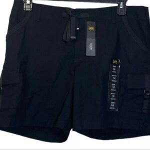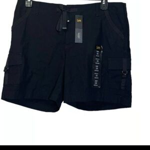 Lee Women's Mid-Rise Drawstring D-Ring Black Cargo Shorts sz 16