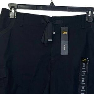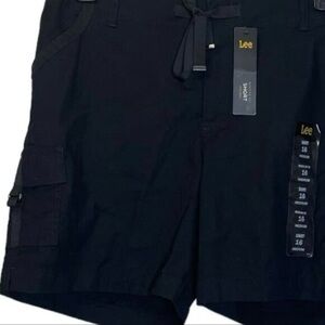 Lee Women's Mid-Rise Drawstring D-Ring Black Cargo Shorts NWT