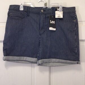 Lee Womens Midrise Railroad Stripe Cuffed 5” Cuffed Denim Shorts Size 16.