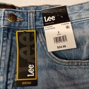 The Lee Heritage Women's Relaxed Fit 3” Inseam Denim Shorts in Size 2 offer a comfortable and stylish option for the warmer seasons. Made from a light wash cotton blend denim, these solid blue shorts feature a relaxed fit with a zip closure and a raw edge hem for a trendy look. With a mid-rise and a 5-pocket design, these shorts are perfect for casual activities such as walking, beach outings, and driving. The regular fit and flat front make them versatile for various occasions, while the 3-inch inseam adds a touch of modern style to the classic design.
