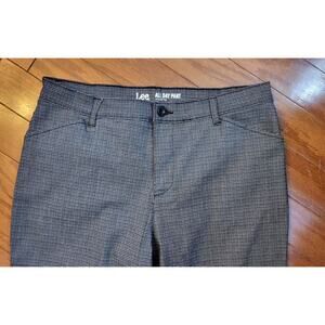 Craft your casual look with the effortless style of Lee Women's Relaxed Fit Straight Leg Chino Pants. Designed for comfort and versatility, these size 12 Long pants feature a timeless black and white small plaid pattern, perfect for a variety of occasions from a laid-back day at the office to a weekend getaway. The high-rise waist and straight leg cut offer a flattering silhouette, while the stretch fabric, a blend of cotton, polyester, and spandex, ensures all-day ease of movement. Functionality meets fashion with practical elements such as a zip and button closure, easy machine washability, and convenient pockets. Whether it's for travel, everyday wear, or workwear, these chinos are tailored to suit your busy lifestyle without compromising on style or comfort. Embrace the relaxed fit and make these Lee All Day Pants a go-to in your wardrobe.
