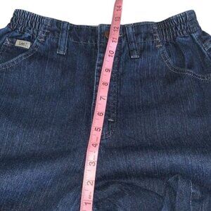 These jeans offer a blend of comfort and durability with a side elastic waist for a tailored fit. The medium blue denim provides a versatile and classic look suitable for casual or semi-casual wear. Designed for long-lasting quality, these jeans combine functionality with style.